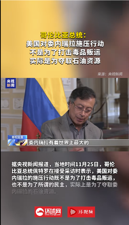 当地时间11月25日,哥伦比亚总统佩特罗在接受采访时表示,美国对委内瑞拉的施压行动既不是为了打击毒品贩运,也不是为了所谓的民主,实际上是为了夺取委内瑞拉的石油资源。